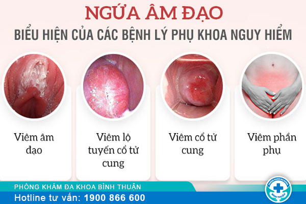 - Phụ nữ bị viêm âm đạo, vùng kín tiết ra nhiều khí hư có màu vàng, mùi hôi khó chịu, làm mất cân bằng môi trường pH của vùng kín, vi khuẩn hoạt động mạnh gây ngứa ngáy vùng cơ quan này.