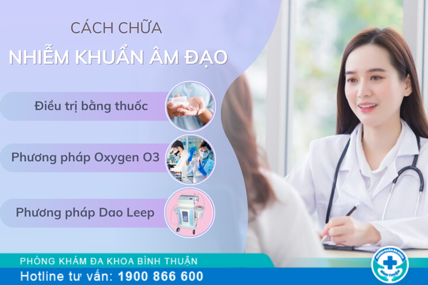 ► Phương pháp Oxygen O3: Được áp dụng để chữa bệnh viêm âm đạo bằng cách sử dụng các ion oxy hoạt tính có khả năng diệt khuẩn khá mạnh, các oxy len lỏi đến ổ bệnh trực tiếp làm sạch khuẩn.