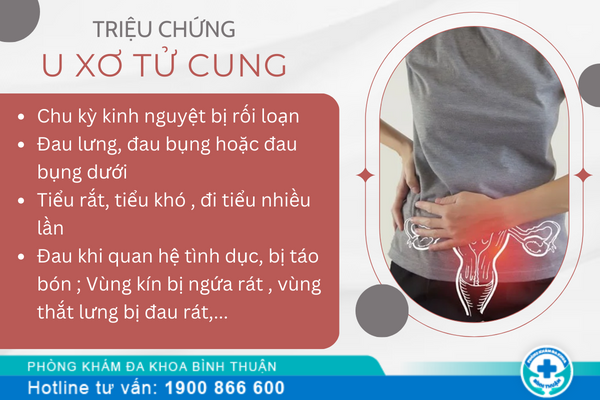 Ngoài các dấu hiệu nêu trên, khi bị u xơ cổ tử cung, người bệnh còn gặp phải các triệu chứng như: Đau khi quan hệ tình dục, bị táo bón ; Vùng kín bị ngứa rát , vùng thắt lưng bị đau rát .