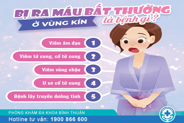 Theo bác sĩ Phòng Khám Phụ Khoa Bình Thuận: Vùng kín chảy máu bất thường thường do sự rối loạn chức năng của buồng trứng dẫn đến xuất huyết tử cung. Ngoài ra, nó còn được xem như biểu hiện của một số bệnh phụ khoa như: