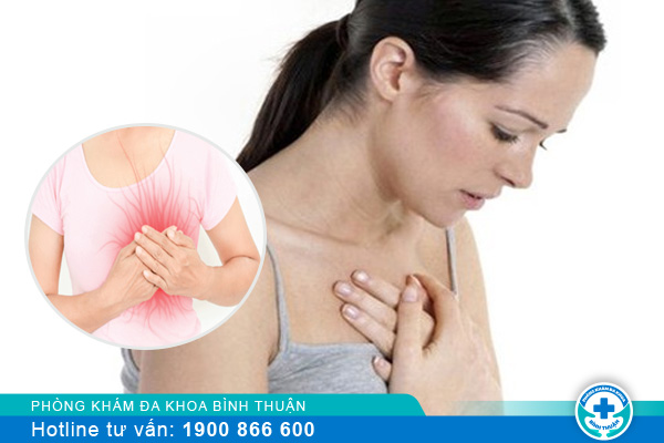 + Cơn đau ngực dữ dội nặng hơn trong kỳ đèn đỏ hoặc trong giai đoạn mang thai;