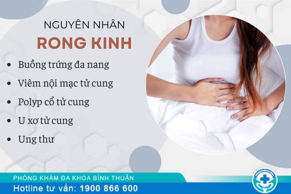 Theo chia sẻ của các bác sĩ Sản Phụ Khoa: Tình trạng rong kinh có thể xuất phát từ việc rối loạn nội tiết tố, tác dụng của nội tiết tố. Tuy nhiên nguy hiểm nhất là do mắc phải các bệnh lí sau: