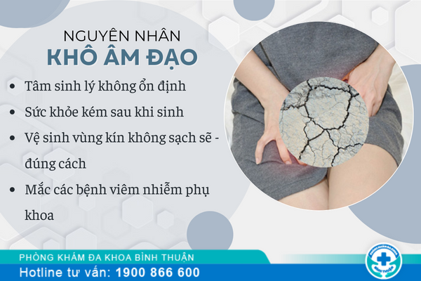 - Khi trải qua quá trình sinh nở, cơ thể nữ giới chưa phục hồi khỏe mạnh, có trường hợp mất nhiều máu do vết thương ở vùng kín hoặc vùng bụng chưa lành, đồng thời bị stress sau sinh sẽ ảnh hưởng đến việc tiết khí hư âm đạo và gây nên tình trạng khô âm đạo.